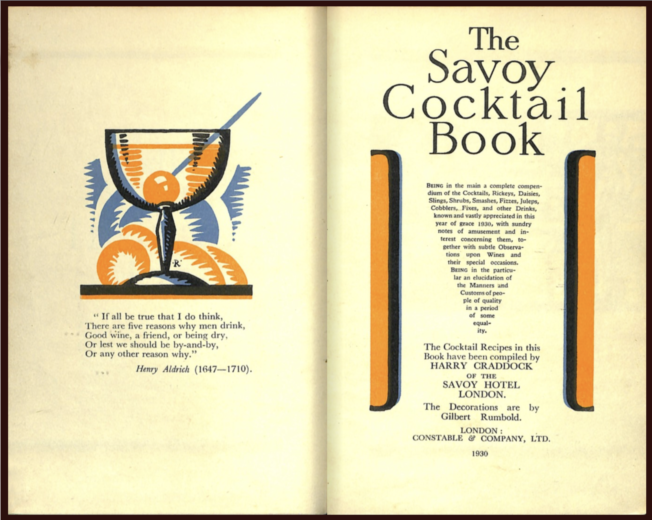 In 1930, amidst the glittering swirl of London's roaring nightlife, The Savoy Cocktail Book was born. Authored by Harry Craddock, the dapper and legendary head bartender of the Savoy Hotel’s American Bar, and published by Constable & Company Ltd., the book quickly became a bible for bartenders and bon vivants alike. Lavishly illustrated by the brilliant Gilbert Rumbold, whose Art Deco flourishes brought flapper glamour and modernist cheek to every page, the book remains a masterpiece of both mixology and design.